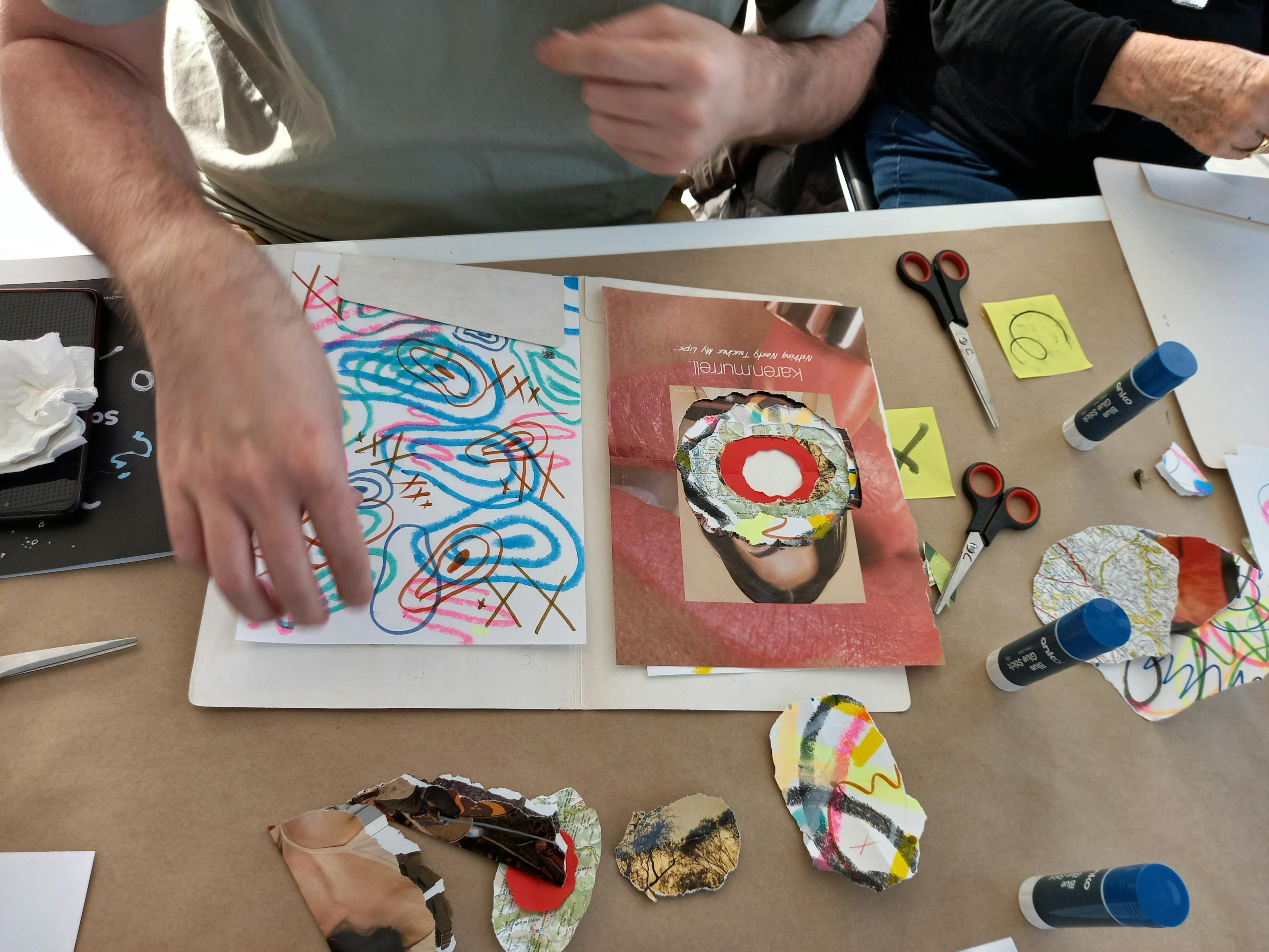 Squiggla educator and artist, Catherine Thomson led an experimental drawing and collage workshop with a cuppa, cake and some creativity at The Chartwell office on 10 July 2024.